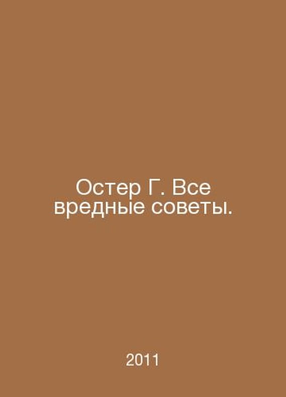 Oster G. All harmful advice. In Russian /Oster G. Vse vrednye sovety. M.: ACT. 2011.Contact us for details or to request photos of available books. Delivery of this book could take longer than normal due to additional handling time before shipping, and no rush delivery options are available. Please let us know if you have a specific date by which you need to receive your order.SKUalb2199eb7d9c1ad45c