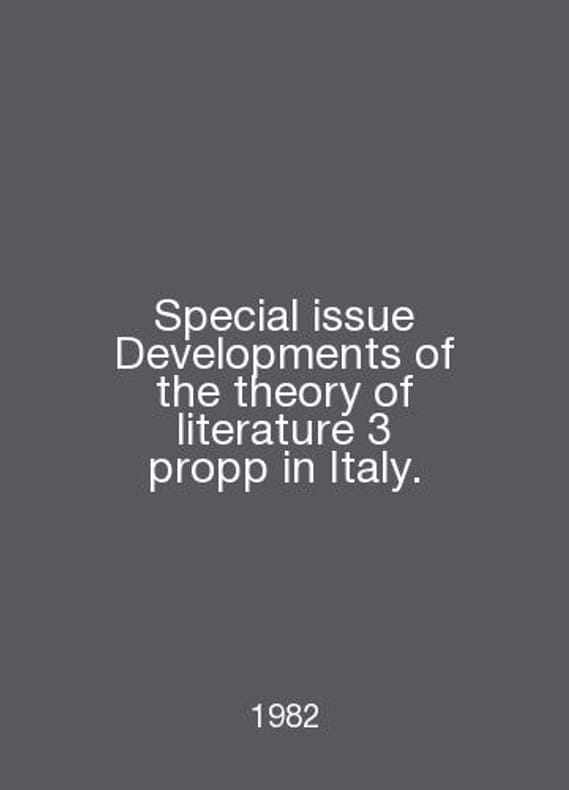 Special issue Developments of the theory of literature 3 propp in Italy. In English /Special issue Developments of the theory of literature 3 propp in Italy. Russian Literature. Volume 12, Issue 1 Amsterdam. (Amsterdam) North-Holland. 1982.. Contact us for details or to request photos of available books. SKUalb21c32978774533c8.