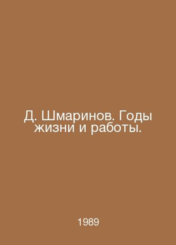 D. Shmarinov. Years of life and work. In Russian /D. Shmarinov. Gody zhizni i raboty. M. Soviet artist 1989.Contact us for details or to request photos of available books. Delivery of this book could take longer than normal due to additional handling time before shipping, and no rush delivery options are available. Please let us know if you have a specific date by which you need to receive your order.SKUalb21e7c67d5ed63d1a