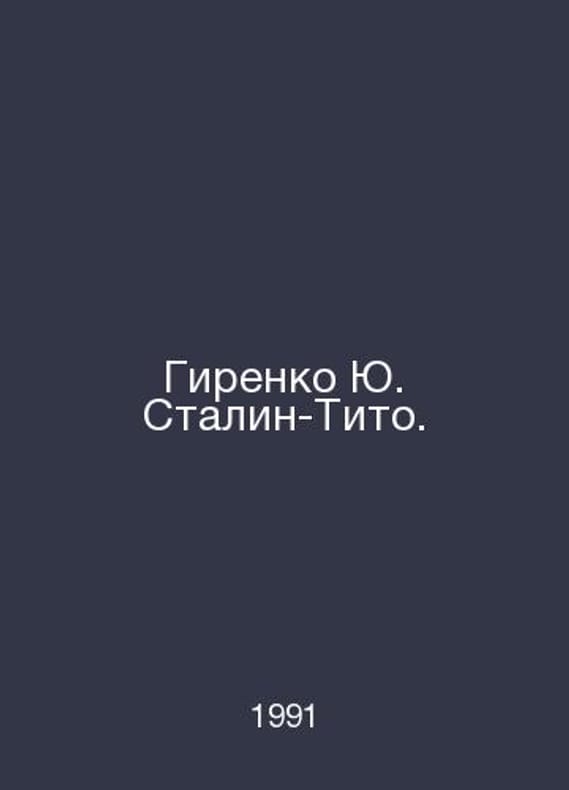 Girenko Yu Stalin-Tito. In Russian /Girenko Yu. Stalin-Tito. M Politizdat 1991.Contact us for details or to request photos of available books. Delivery of this book could take longer than normal due to additional handling time before shipping, and no rush delivery options are available. Please let us know if you have a specific date by which you need to receive your order.SKUalb22dfe46437c40897