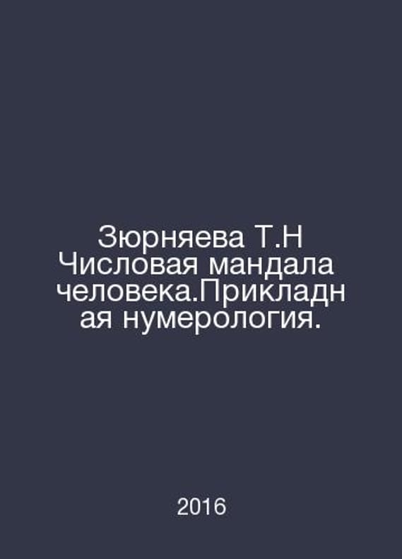 Zurniaeva T.N Human Numerical Mandala. Applied Numerology. In Russian /Zyurnyaeva T.N Chislovaya mandala cheloveka.Prikladnaya numerologiya. M. Veligor 2016. Contact us for details or to request photos of available books. Delivery of this book could take longer than normal due to additional handling time before shipping, and no rush delivery options are available. Please let us know if you have a specific date by which you need to receive your order. SKUalb230ce5897314c8f3