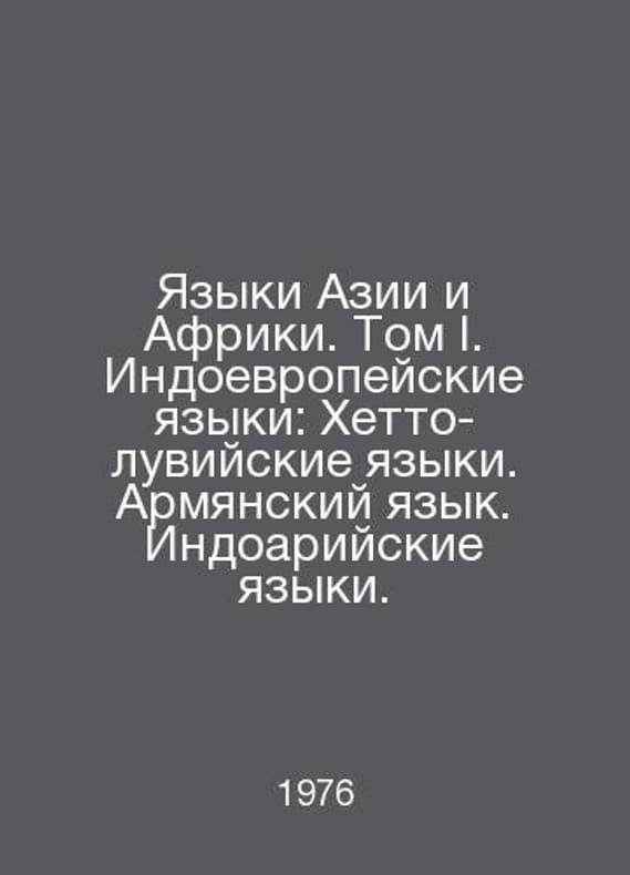 Asian and African Languages. Volume I. Indo-European Languages: Hetto-Luvian Languages. Armenian Languages. Indo-Aryan Languages. In Russian /Yazyki Azii i Afriki. Tom I. Indoevropeyskie yazyki: Khetto-luviyskie yazyki. Armyanskiy yazyk. Indoariyskie yazyki. Chief Editor, Academician N.I. Konrad. Rev. Editor of the book, Dr. M.S. Andronov. M. Science 1976.. Contact us for details or to request photos of available books. SKUalb231df857a62124f7.