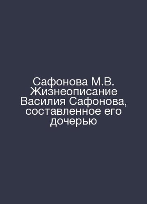 M.V. Safonovas description of Vasily Safonov by his daughter In Russian /Safonova M.V. Zhizneopisanie Vasiliya Safonova, sostavlennoe ego docheryu Series: Letters of Time Moscow Petroglyph 2021, 432Contact us for details or to request photos of available books. Delivery of this book could take longer than normal due to additional handling time before shipping, and no rush delivery options are available. Please let us know if you have a specific date by which you need to receive your order.SKUalb244688aa9eb8f8aa