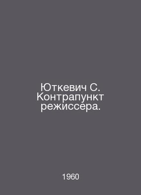 Jutkevich S. Counterpoint by the director. In Russian /Yutkevich S. Kontrapunkt rezhissera. M. Art 1960.. Contact us for details or to request photos of available books. SKUalb244ebef9d2c7234b.