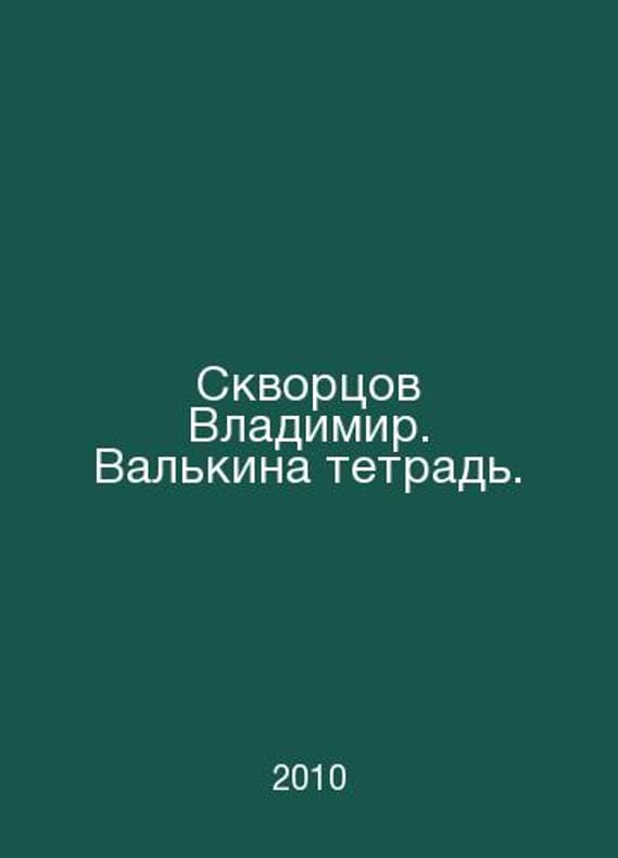 Vladimir Skvortsov. Valkinas notebook. In Russian /Skvortsov Vladimir. Valkina tetrad. Romantic Story). Komsomolsk-nA: 2010 year.Contact us for details or to request photos of available books. Delivery of this book could take longer than normal due to additional handling time before shipping, and no rush delivery options are available. Please let us know if you have a specific date by which you need to receive your order.SKUalb246a67c1a7fcaef3
