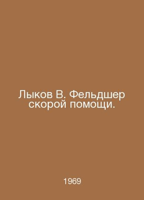 Lykov V. Ambulance paramedic. In Russian /Lykov V. Feldsher skoroy pomoshchi. M Medicine 1969.Contact us for details or to request photos of available books. Delivery of this book could take longer than normal due to additional handling time before shipping, and no rush delivery options are available. Please let us know if you have a specific date by which you need to receive your order.SKUalb255720afe15e7680