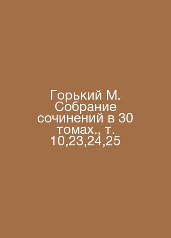 Gorky M. Collection of essays in 30 volumes, vol. 10,23,24,25 In Russian /Gorkiy M. Sobranie sochineniy v 30 tomakh., t. 10,23,24,25 Gorky M. Collection of essays in 30 volumes, vol. 10,23,24,25.Contact us for details or to request photos of available books. Delivery of this book could take longer than normal due to additional handling time before shipping, and no rush delivery options are available. Please let us know if you have a specific date by which you need to receive your order.SKUalb25bf88dc84d75a5a