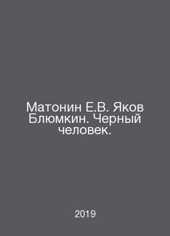 Matonin E.V. Yakov Blumkin. Black Man. In Russian /Matonin E.V. Yakov Blyumkin. Chernyy chelovek. Series: NEXT. M. The Young Guard. 2019.Contact us for details or to request photos of available books. Delivery of this book could take longer than normal due to additional handling time before shipping, and no rush delivery options are available. Please let us know if you have a specific date by which you need to receive your order.SKUalb26d89f06a7fbb3b4