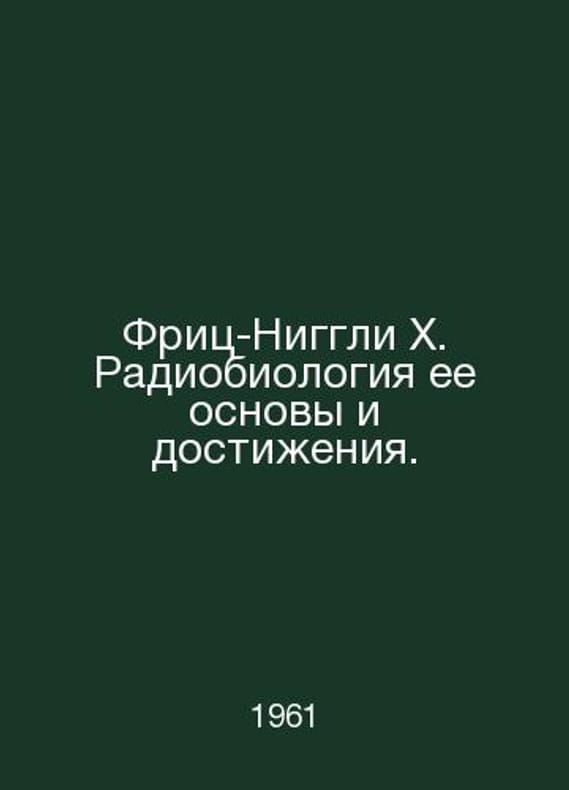 Fritz-Niggli H. Radiobiology of its foundations and achievements. In Russian /Frits-Niggli Kh. Radiobiologiya ee osnovy i dostizheniya. M. State Publishing House of Literature in the Field of Atomic Science and Technology. 1961.Contact us for details or to request photos of available books. Delivery of this book could take longer than normal due to additional handling time before shipping, and no rush delivery options are available. Please let us know if you have a specific date by which you need to receive your order.SKUalb277607367aac00d4