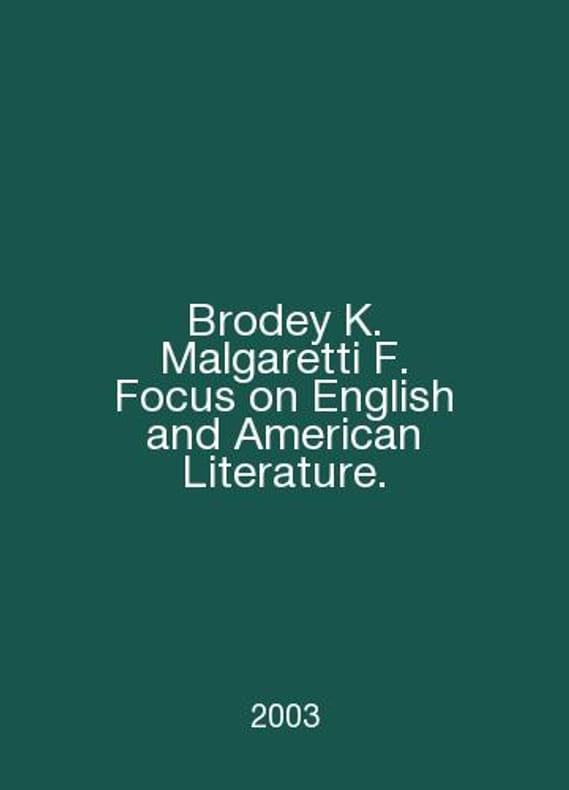 Brodey K. Malgaretti F. Focus on English and American Literature. In English /Brodey K. Malgaretti F. Focus on English and American Literature. M. Iris Press 2003.. Contact us for details or to request photos of available books. SKUalb2794cb65a9249b9f.