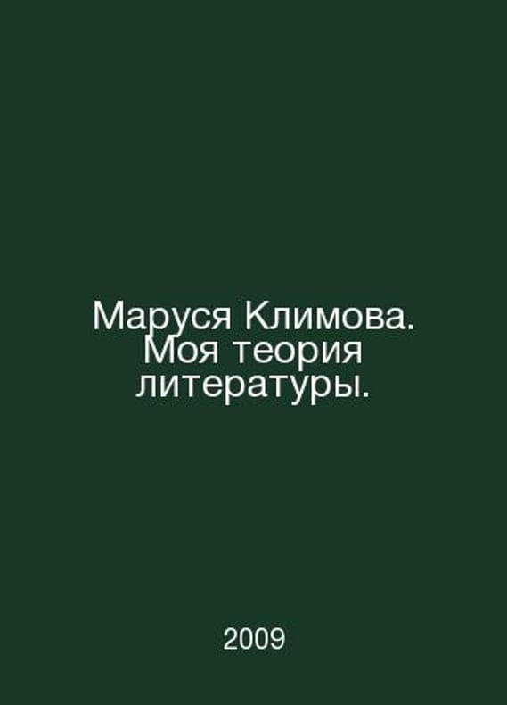 Marusya Klimova. My theory of literature. In Russian /Marusya Klimova. Moya teoriya literatury. IC Humanities Academy Saint Petersburg 2009. Contact us for details or to request photos of available books. Delivery of this book could take longer than normal due to additional handling time before shipping, and no rush delivery options are available. Please let us know if you have a specific date by which you need to receive your order. SKUalb27c4ca1fbf48a83d