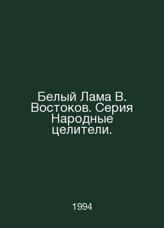 The White Lama of V. Vostokov. A series of Folk Healers. In Russian /Belyy Lama V. Vostokov. Seriya Narodnye tseliteli. A set of 5 books. SPb Karo 1994. Contact us for details or to request photos of available books. Delivery of this book could take longer than normal due to additional handling time before shipping, and no rush delivery options are available. Please let us know if you have a specific date by which you need to receive your order. SKUalb28157feb876d4ce6