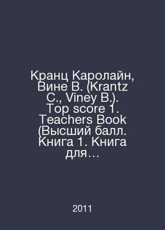 Krantz C., Viney B.. Top score 1. Teachers Book. In English /Krants Karolayn, Vine V. (Krantz C., Viney B.). Top score 1. Teachers Book (Vysshiy ball. Kniga 1. Kniga dlya uchitelya). Book in English. Oxford. Oxford University Press. 2011.. Contact us for details or to request photos of available books. SKUalb28d06b3ba735a76b.