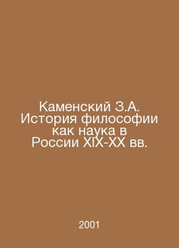 Kamensky Z.A. History of Philosophy as Science in Russia of the XIX-XX Centuries In Russian /Kamenskiy Z.A. Istoriya filosofii kak nauka v Rossii XIX-XX vv. M. Eslan 2001.Contact us for details or to request photos of available books. Delivery of this book could take longer than normal due to additional handling time before shipping, and no rush delivery options are available. Please let us know if you have a specific date by which you need to receive your order.SKUalb2ab4c863b3be8f38