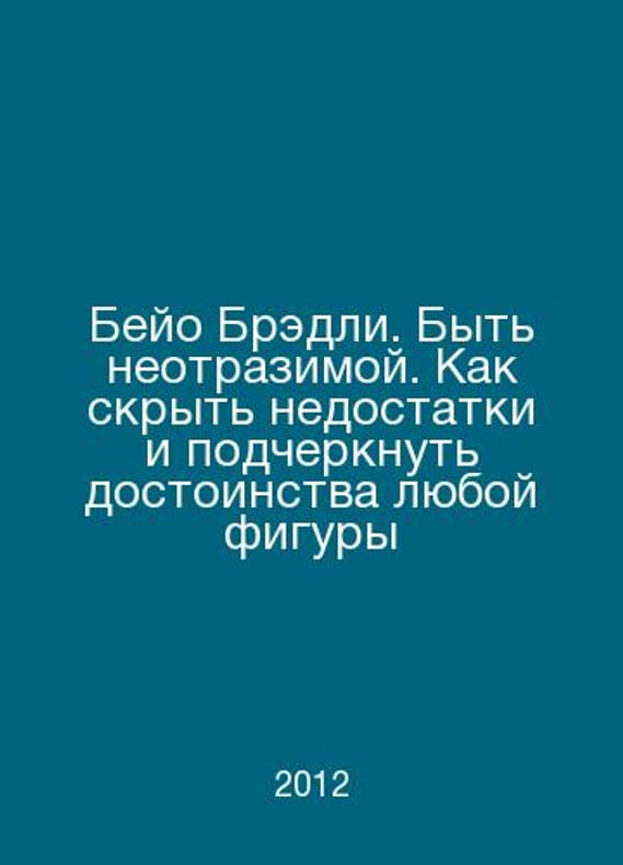Baio Bradley. Be irresistible. How to hide flaws and emphasize the virtues of any figure In Russian /Beyo Bredli. Byt neotrazimoy. Kak skryt nedostatki i podcherknut dostoinstva lyuboy figury M. ACT 2012. Contact us for details or to request photos of available books. Delivery of this book could take longer than normal due to additional handling time before shipping, and no rush delivery options are available. Please let us know if you have a specific date by which you need to receive your order.SKUalb2aba80f26367d0cc