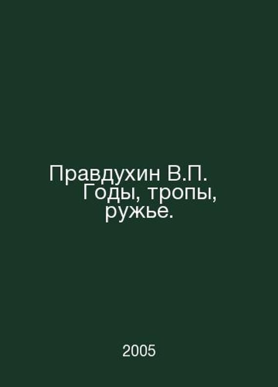 V. Pravdukhin Years, Tracks, Guns. In Russian /Pravdukhin V.† †Gody, tropy, ruzhe. Series: Hunting Adventures. M. Veche Publishing House. 2005.Contact us for details or to request photos of available books. Delivery of this book could take longer than normal due to additional handling time before shipping, and no rush delivery options are available. Please let us know if you have a specific date by which you need to receive your order.SKUalb2b1e19f8cd6b8417