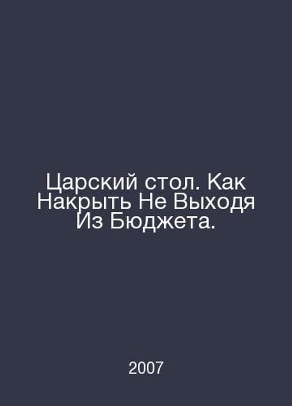 The Kings Table: How to Cover Without Coming Out of the Budget. In Russian /Tsarskiy stol. Kak Nakryt Ne Vykhodya Iz Byudzheta. M. Readers Digest 2007.. Contact us for details or to request photos of available books. SKUalb2b664146d00596c8.