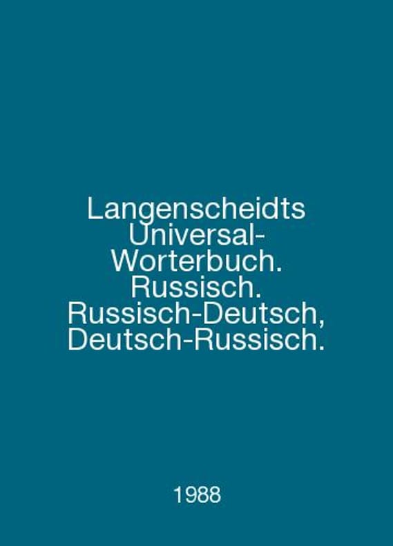 Langenscheidts Universal-Worterbuch. Englisch. Englisch-Deutsch, Deutsch-Englisch. In English /Langenscheidts Universal-Worterbuch. Russisch. Russisch-Deutsch, Deutsch-Russisch. Neubearbeitung 1983. Auflage 6. In German. Language Berlin. Langenscheidt. 1988.. Contact us for details or to request photos of available books. SKUalb2c22fd5be73fdc5e.