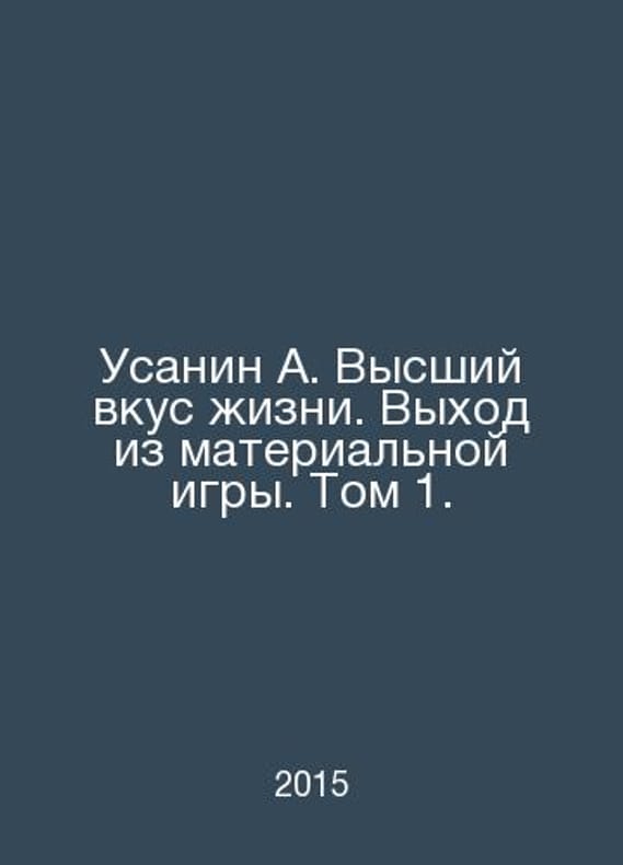 Usanin A. The Higher Taste of Life. Escaping the Material Game. Volume 1. In Russian /Usanin A. Vysshiy vkus zhizni. Vykhod iz materialnoy igry. Tom 1. M. ACT 2015. Contact us for details or to request photos of available books. Delivery of this book could take longer than normal due to additional handling time before shipping, and no rush delivery options are available. Please let us know if you have a specific date by which you need to receive your order. SKUalb2c41722ec261b24c