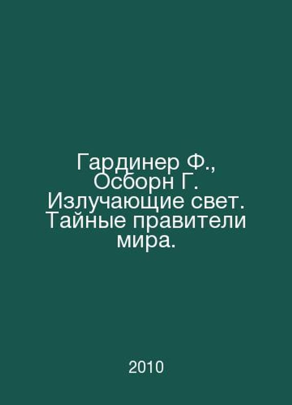 Gardiner F., Osborne G. The Shining Light: The Secret Rulers of the World. In Russian /Gardiner F., Osborn G. Izluchayushchie svet. Taynye praviteli mira. Series: The Mysteries of Human History by M. Eksmo 2010. Contact us for details or to request photos of available books. Delivery of this book could take longer than normal due to additional handling time before shipping, and no rush delivery options are available. Please let us know if you have a specific date by which you need to receive your order. SKUalb2ca9fb1990720198