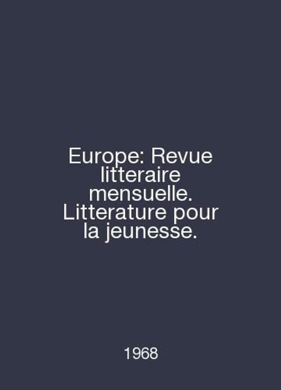 Europe: Revue litteraire mensuelle. Litterature pour la jeunesse. In English /Europe: Revue litteraire mensuelle. Litterature pour la jeunesse. Janvier-Fevrier 1968. Paris 1968.. Contact us for details or to request photos of available books. SKUalb2cd8d8a7cbf0b1a9.