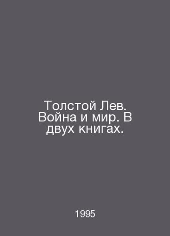 Tolstoy the Lion. War and Peace. In two books. In Russian /Tolstoy Lev. Voyna i mir. V dvukh knigakh. Tolstoy the Lion. War and Peace. In two books. Contact us for details or to request photos of available books. Delivery of this book could take longer than normal due to additional handling time before shipping, and no rush delivery options are available. Please let us know if you have a specific date by which you need to receive your order.SKUalb2dc7ef973a303f57