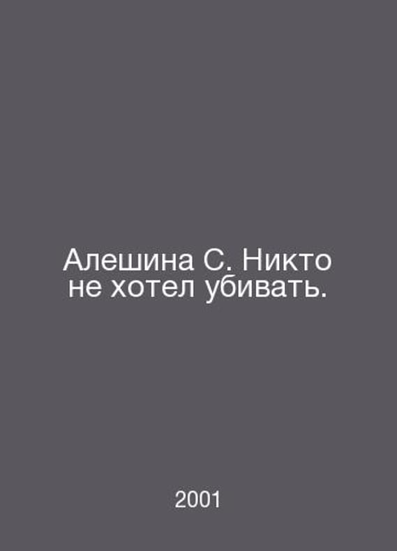 Alyushina S. Nobody wanted to kS.Pb.In Russian /Aleshina S. Nikto ne khotel ubivat. Russian bestseller (series) M Exmo-press 2001.Contact us for details or to request photos of available books. Delivery of this book could take longer than normal due to additional handling time before shipping, and no rush delivery options are available. Please let us know if you have a specific date by which you need to receive your order.SKUalb2e453164de26d352