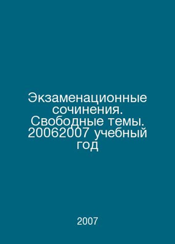 Exam essays. Free Themes. 2006-2007 academic year In Russian /Ekzamenatsionnye sochineniya. Svobodnye temy. 20062007 uchebnyy god Study, M Exam 2007. Contact us for details or to request photos of available books. Delivery of this book could take longer than normal due to additional handling time before shipping, and no rush delivery options are available. Please let us know if you have a specific date by which you need to receive your order. SKUalb304b5c67b9c1ab24