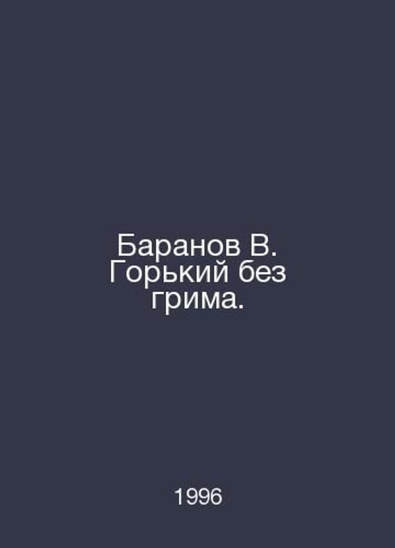 Baranov V. Gorky without makeup. In Russian /Baranov V. Gorkiy bez grima. M Agro 1996.Contact us for details or to request photos of available books. Delivery of this book could take longer than normal due to additional handling time before shipping, and no rush delivery options are available. Please let us know if you have a specific date by which you need to receive your order.SKUalb3052837b09576ace
