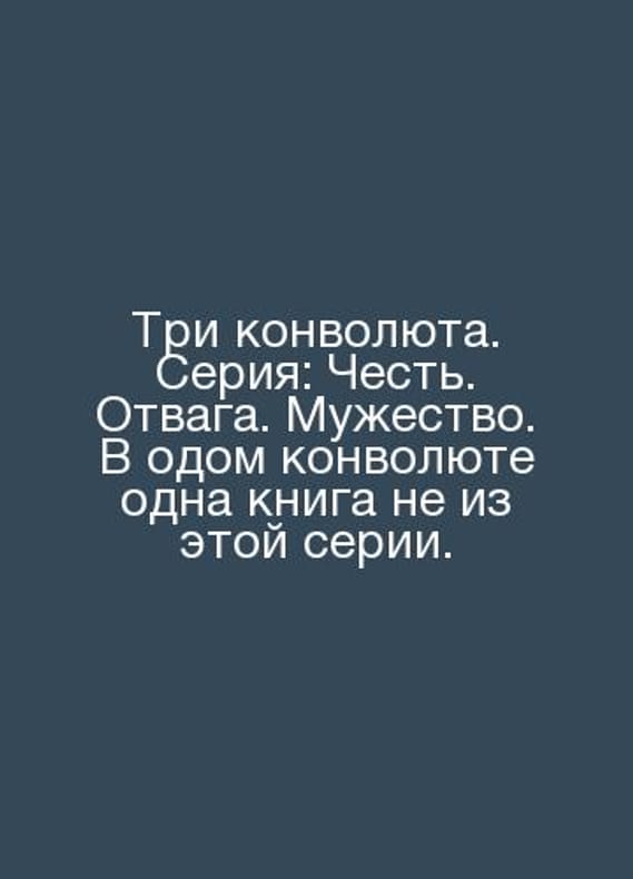 Three Convolutees. Series: Honor. Courage. Courage. There is one book not in this series. In Russian /Tri konvolyuta. Seriya: Chest. Otvaga. Muzhestvo. V odom konvolyute odna kniga ne iz etoy serii. Three Convolutees. Series: Honor. Courage. Courage. There is one book not in this series.Contact us for details or to request photos of available books. Delivery of this book could take longer than normal due to additional handling time before shipping, and no rush delivery options are available. Please let us know if you have a specific date by which you need to receive your order.SKUalb3056c34f880166c5