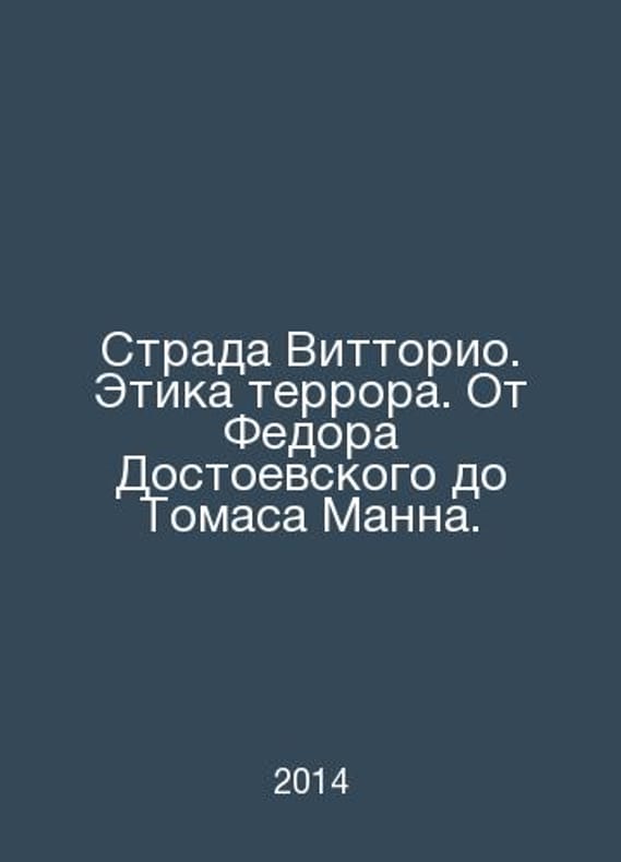 Vittorio Strada: The Ethics of Terror: From Fyodor Dostoyevsky to Thomas Mann. In Russian /Strada Vittorio. Etika terrora. Ot Fedora Dostoevskogo do Tomasa Manna. Translated from the Italian K. Janovich-Strada. M. Russian political encyclopedia. 2014. Contact us for details or to request photos of available books. Delivery of this book could take longer than normal due to additional handling time before shipping, and no rush delivery options are available. Please let us know if you have a specific date by which you need to receive your order. SKUalb30b8ae12059ca200