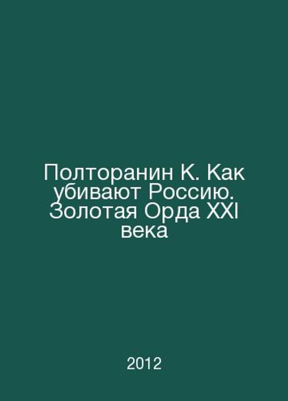 Poltoranin K. How Russia is Killed. The Golden Horde of the XXI Century In Russian /Poltoranin K. Kak ubivayut Rossiyu. Zolotaya Orda XXI veka M Yauza-press 2012.Contact us for details or to request photos of available books. Delivery of this book could take longer than normal due to additional handling time before shipping, and no rush delivery options are available. Please let us know if you have a specific date by which you need to receive your order.SKUalb3155bc395e5845ff