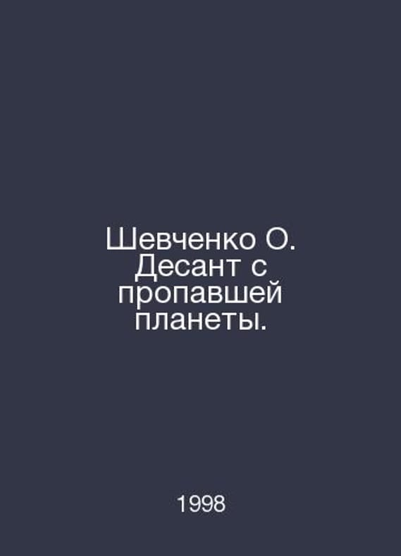 Shevchenko O. A landing from a lost planet. In Russian /Shevchenko O. Desant s propavshey planety. Series: ACT M Star Maze 1998.Contact us for details or to request photos of available books. Delivery of this book could take longer than normal due to additional handling time before shipping, and no rush delivery options are available. Please let us know if you have a specific date by which you need to receive your order.SKUalb3183a22fe15a8f58
