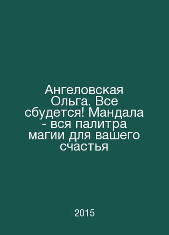 Angelovskaya Olga. Everything will come true Mandala - the whole palette of magic for your happiness In Russian /Angelovskaya Olga. Vse sbudetsya Mandala - vsya palitra magii dlya vashego schastya Sat.: All 2015. Contact us for details or to request photos of available books. Delivery of this book could take longer than normal due to additional handling time before shipping, and no rush delivery options are available. Please let us know if you have a specific date by which you need to receive your order. SKUalb3197d47389e184b1