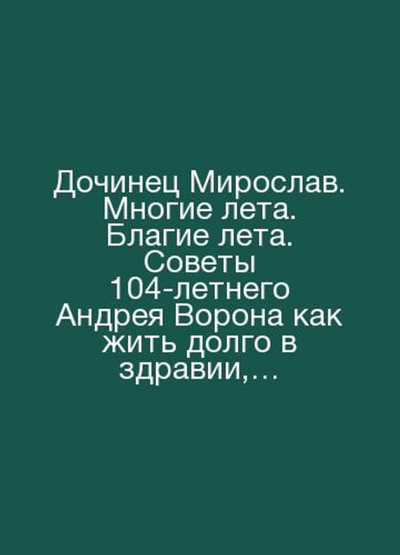 Dauchinets Miroslav. Many summers. Good summers. Advice from 104-year-old Andrei Voron on how to live long in health, happiness and joy In Russian /Dochinets Miroslav. Mnogie leta. Blagie leta. Sovety 104-letnego Andreya Vorona kak zhit dolgo v zdravii, schaste i radosti M Ark 2023.Contact us for details or to request photos of available books. Delivery of this book could take longer than normal due to additional handling time before shipping, and no rush delivery options are available. Please let us know if you have a specific date by which you need to receive your order.SKUalb32147a0d2887c684