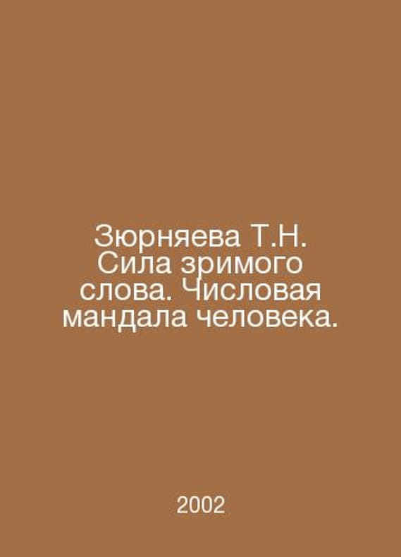 T.N. Zurniaeva The Power of the Visible Word. The Numerical Mandala of Man. In Russian /Zyurnyaeva T.N. Sila zrimogo slova. Chislovaya mandala cheloveka. M.: Veligorod. 2002. Contact us for details or to request photos of available books. Delivery of this book could take longer than normal due to additional handling time before shipping, and no rush delivery options are available. Please let us know if you have a specific date by which you need to receive your order. SKUalb3215fb01a5238bc4