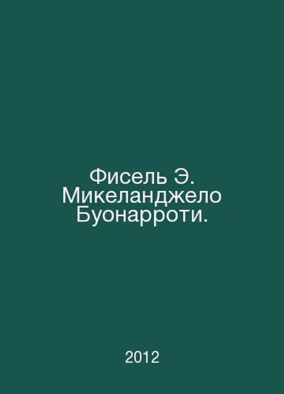Fissel E. Michelangelo Buonarroti. In Russian /Fisel E. Mikelandzhelo Buonarroti. Historical Portraits). M. Eksmo. 2012.Contact us for details or to request photos of available books. Delivery of this book could take longer than normal due to additional handling time before shipping, and no rush delivery options are available. Please let us know if you have a specific date by which you need to receive your order.SKUalb3256671ad3d427c2
