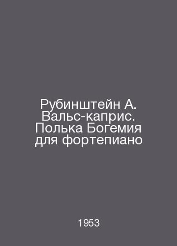 Rubinstein A. Waltz Caprice. Polka Bohemia for Piano In Russian /Rubinshteyn A. Vals-kapris. Polka Bogemiya dlya fortepiano L Music 1953. Contact us for details or to request photos of available books. Delivery of this book could take longer than normal due to additional handling time before shipping, and no rush delivery options are available. Please let us know if you have a specific date by which you need to receive your order.SKUalb32651759e5025267