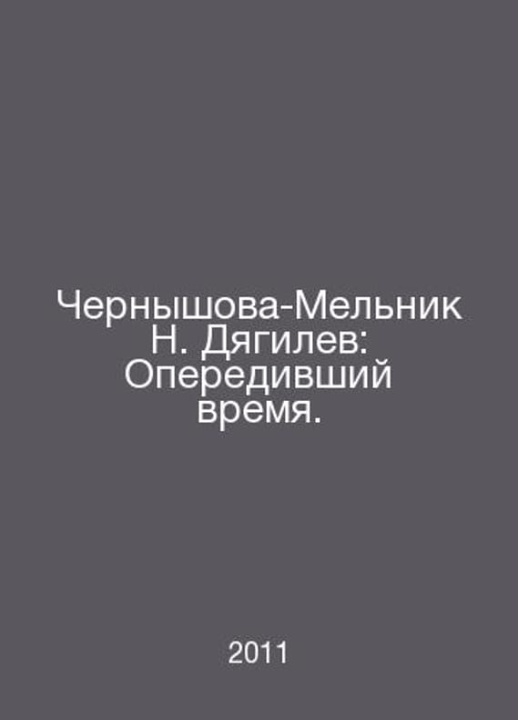 Chernyshova-Melnik N. Diaghilev: Leading Time. In Russian /Chernyshova-Melnik N. Dyagilev: Operedivshiy vremya. Series: The Lives of Wonderful People (LHL). Issue 1510 (1310). M. The Young Guard, 2011.Contact us for details or to request photos of available books. Delivery of this book could take longer than normal due to additional handling time before shipping, and no rush delivery options are available. Please let us know if you have a specific date by which you need to receive your order.SKUalb32f7414d4e610778