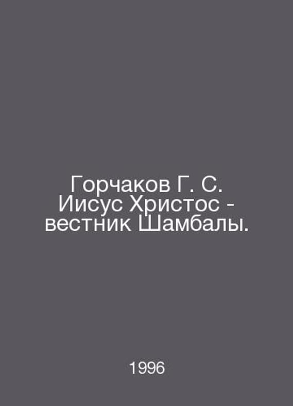 Gorchakov G. S. Jesus Christ - Messenger of Shambala. In Russian /Gorchakov G. S. Iisus Khristos - vestnik Shambaly. Editions 2, revised Tomsk Banner of Peace 1996. Contact us for details or to request photos of available books. Delivery of this book could take longer than normal due to additional handling time before shipping, and no rush delivery options are available. Please let us know if you have a specific date by which you need to receive your order. SKUalb337dc2fa215a7101