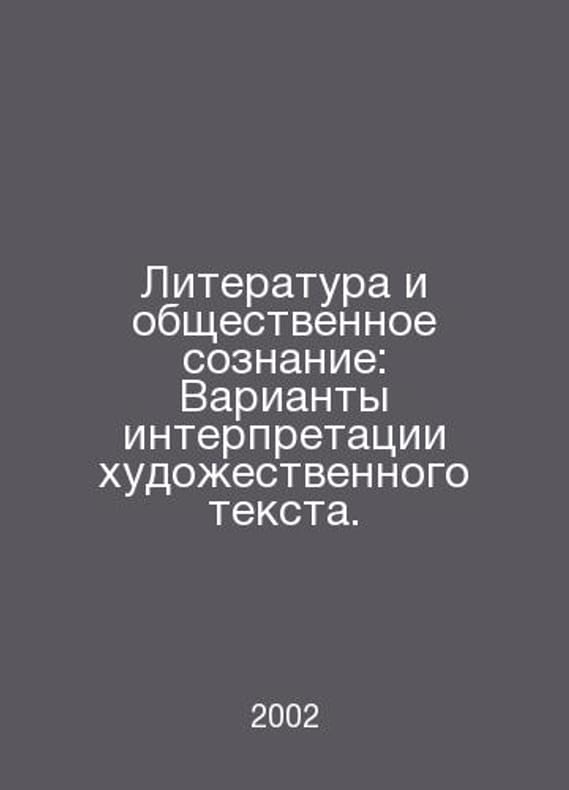 Literature and Public Consciousness: Options for Interpreting Artistic Text. In Russian /Literatura i obshchestvennoe soznanie: Varianty interpretatsii khudozhestvennogo teksta. Proceedings of the VII Interuniversity Scientific and Practical Conference (May 20-21, 2002). Contact us for details or to request photos of available books. Delivery of this book could take longer than normal due to additional handling time before shipping, and no rush delivery options are available. Please let us know if you have a specific date by which you need to receive your order. SKUalb337f06581b108a8b