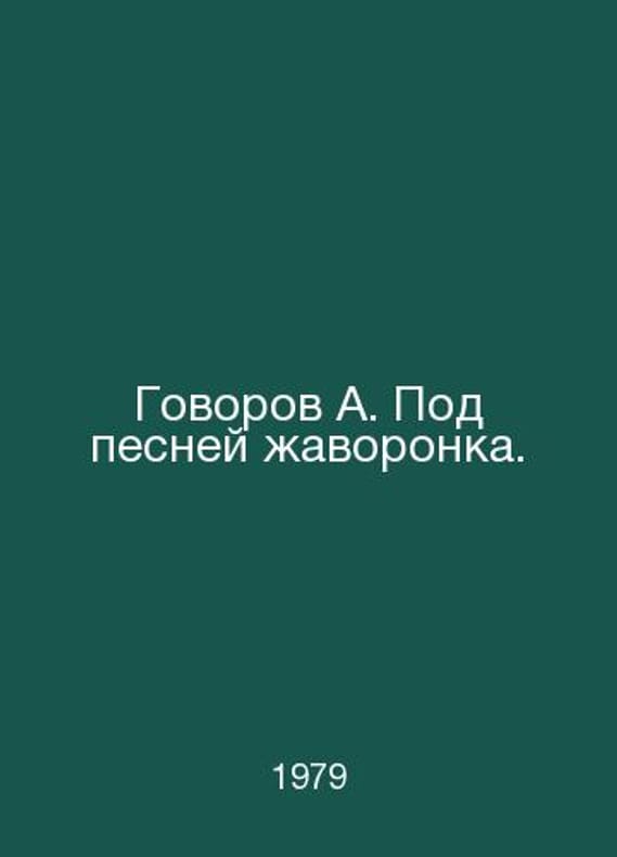 Speak A. Under the Song of the Lark. In Russian /Govorov A. Pod pesney zhavoronka. M Sovremennik 1979.Contact us for details or to request photos of available books. Delivery of this book could take longer than normal due to additional handling time before shipping, and no rush delivery options are available. Please let us know if you have a specific date by which you need to receive your order.SKUalb349c993e8a54d801