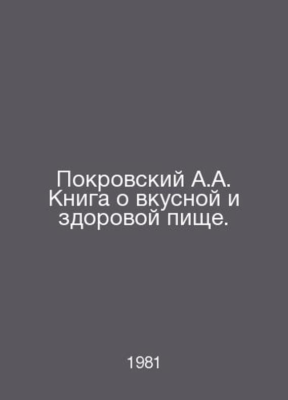 Pokrovsky A.A. A book about tasty and healthy food. In Russian /Pokrovskiy A.A. Kniga o vkusnoy i zdorovoy pishche. M. Publishing House Light and Food Industry. 8th edition 1981.. Contact us for details or to request photos of available books. SKUalb34b9a98abdedb0d1.