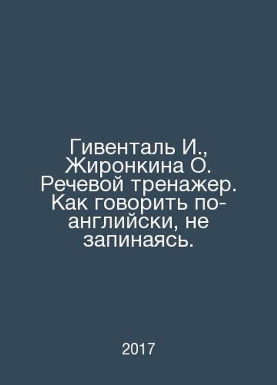 Giventhal I., Zhironkina O. Speech simulator. How to speak English without getting choked up. In Russian /Givental I., Zhironkina O. Rechevoy trenazher. Kak govorit po-angliyski, ne zapinayas. St. Petersburg. Peter. 2017 year..Contact us for details or to request photos of available books. Delivery of this book could take longer than normal due to additional handling time before shipping, and no rush delivery options are available. Please let us know if you have a specific date by which you need to receive your order. SKUalb34f10218cb1218db