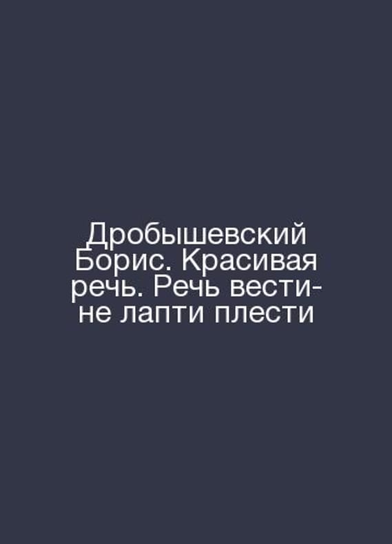 Drobyshevsky Boris. A beautiful speech. Its a question of lead or not whip. In Russian /Drobyshevskiy Boris. Krasivaya rech. Rech vesti-ne lapti plesti M ID Fabulous Road 2021 520Contact us for details or to request photos of available books. Delivery of this book could take longer than normal due to additional handling time before shipping, and no rush delivery options are available. Please let us know if you have a specific date by which you need to receive your order. SKUalb3521ff70603c0aae
