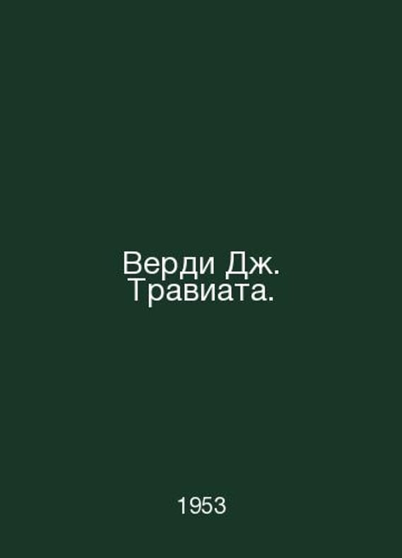Verdi J. La Traviata In Russian /Verdi Dzh. Traviata. Opera in 3 Acts. Translation for singing from the piano. Libretto by F. Piave. M. Muzgiz. 1953. 312 p. We have thousands of titles and often several copies of each title may be available. Please feel free to contact us for a detailed description of the copies available. SKUalbc43e3ba68cfb85e0.