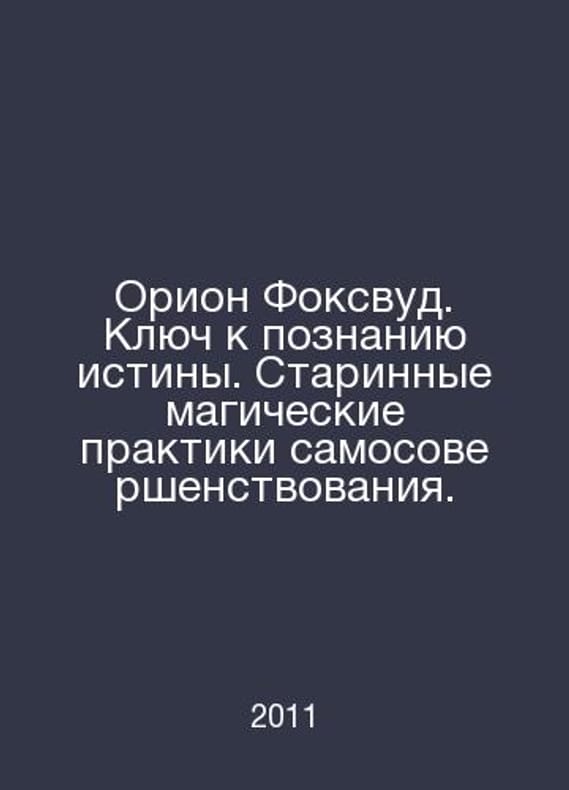 Orion Foxwood. The key to knowing the truth. Ancient magic practices of cultivation. In Russian /Orion Foksvud. Klyuch k poznaniyu istiny. Starinnye magicheskie praktiki samosovershenstvovaniya. Series: Rhythms of the Earth. St. Petersburg: All. 2011 year. Contact us for details or to request photos of available books. Delivery of this book could take longer than normal due to additional handling time before shipping, and no rush delivery options are available. Please let us know if you have a specific date by which you need to receive your order. SKUalb35a586804a83ce80