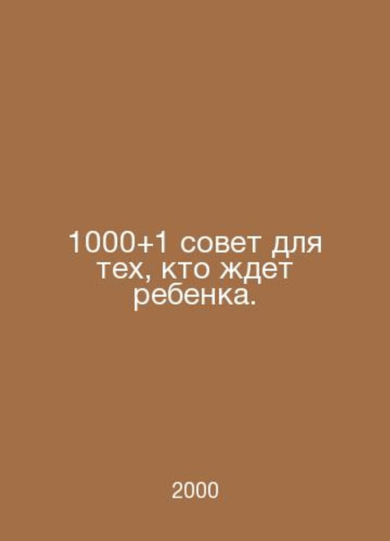 1000 and 1 advice for those expecting a child. In Russian /1000and1 sovet dlya tekh, kto zhdet rebenka. Mn 2000.Contact us for details or to request photos of available books. Delivery of this book could take longer than normal due to additional handling time before shipping, and no rush delivery options are available. Please let us know if you have a specific date by which you need to receive your order.SKUalb366133d58aad6651