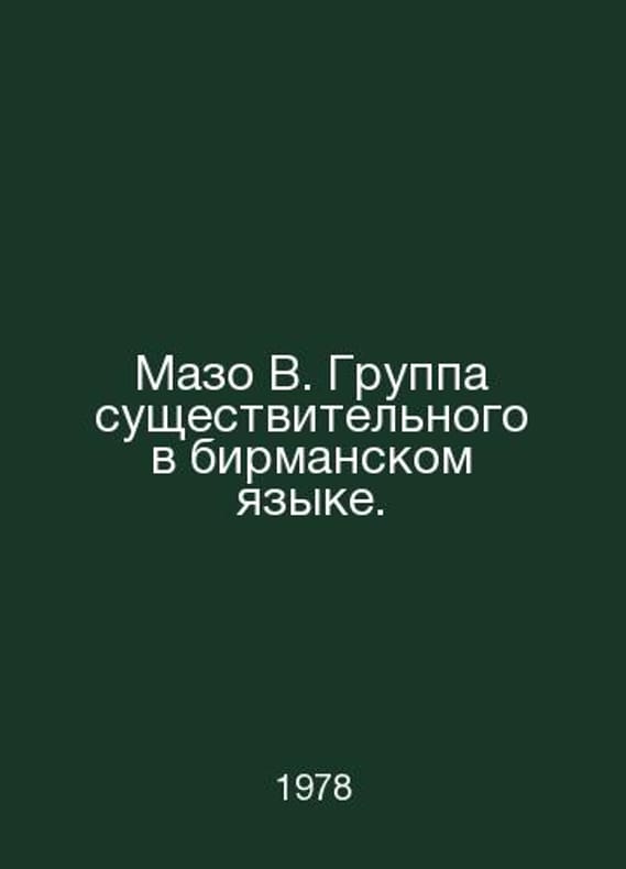 Maso W. Group noun in Burmese. In Russian /Mazo V. Gruppa sushchestvitelnogo v birmanskom yazyke. M. Science. Main editorial. 1978.. Contact us for details or to request photos of available books. SKUalb369872afb35be102.