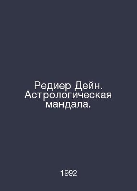 Redier Dein. Astrological Mandala. In Russian /Redier Deyn. Astrologicheskaya mandala. M. Nauka. 1992. Contact us for details or to request photos of available books. Delivery of this book could take longer than normal due to additional handling time before shipping, and no rush delivery options are available. Please let us know if you have a specific date by which you need to receive your order. SKUalb3793534da93684ff